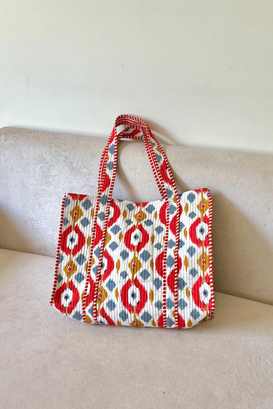 Pomodoro Ikkat Travel Tote | Reversible | Red