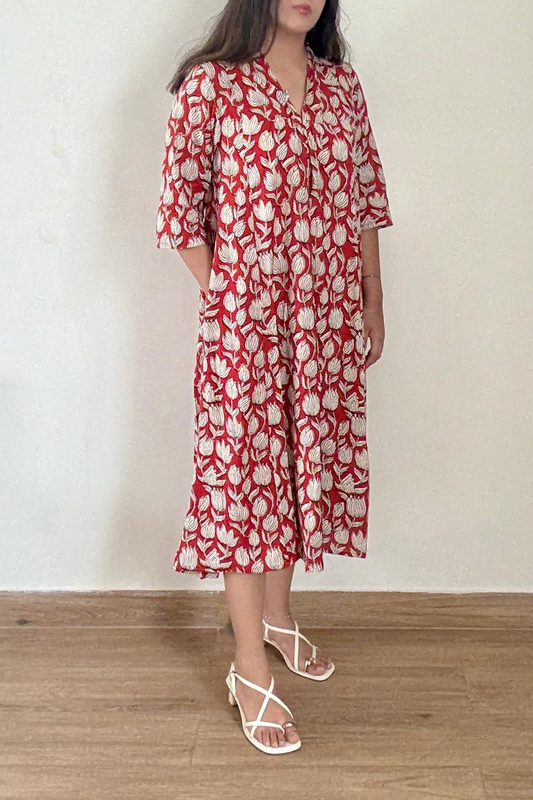 Marigold Kurta Dress | Cotton | Red