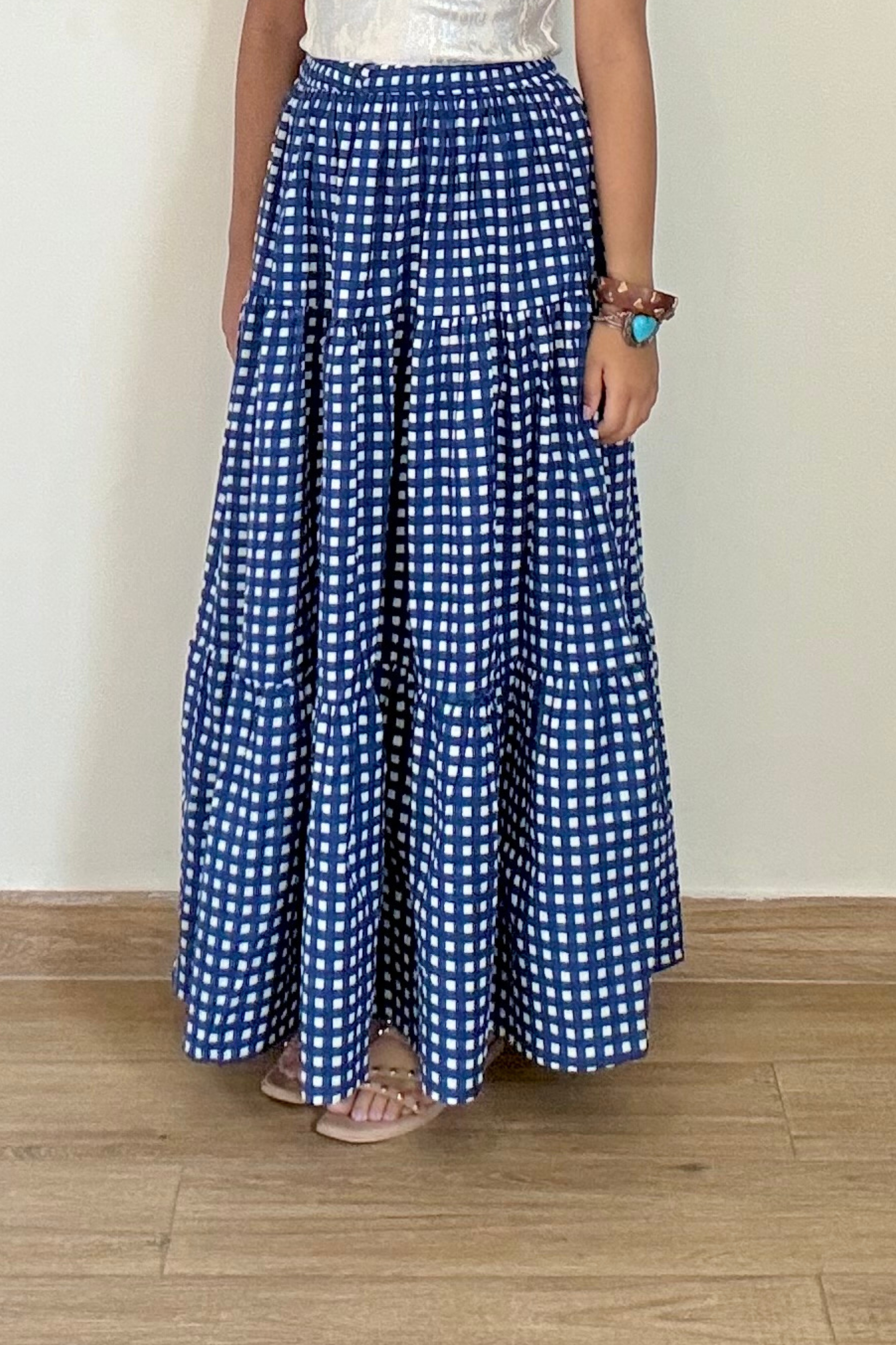 Introducing our versatile cotton tiered maxi skirt perfect for work, leisure, or vacation. This is 100% cotton skirt offer comfort and style all day.